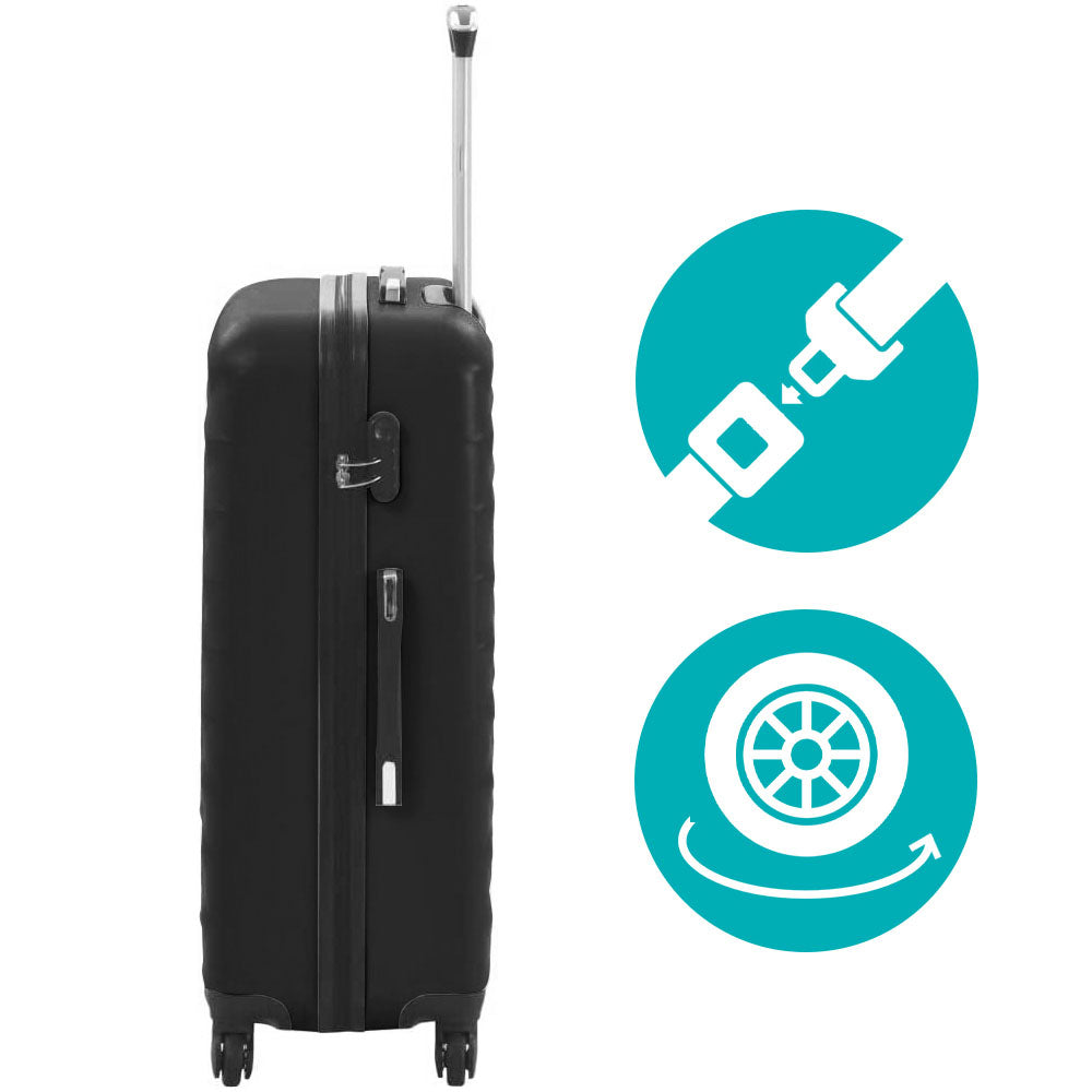 Valmistaudu lomalle tai työmatkalle ilman stressiä! Tämä matkalaukkusetti sisältää 3 eri kokoista kovakuorista matkalaukkua sekä 1 kosmetiikkalaukun, joten kaikki matkatarvikkeesi mahtuvat helposti mukaan. Kovakuorinen laukku suojaa tavaroitasi, sisäiset hihnat pitävät ne paikoillaan, ja neljä 360° pyörivää pyörää sekä säädettävä teleskooppikahva tekevät laukkujen liikuttamisesta vaivatonta.