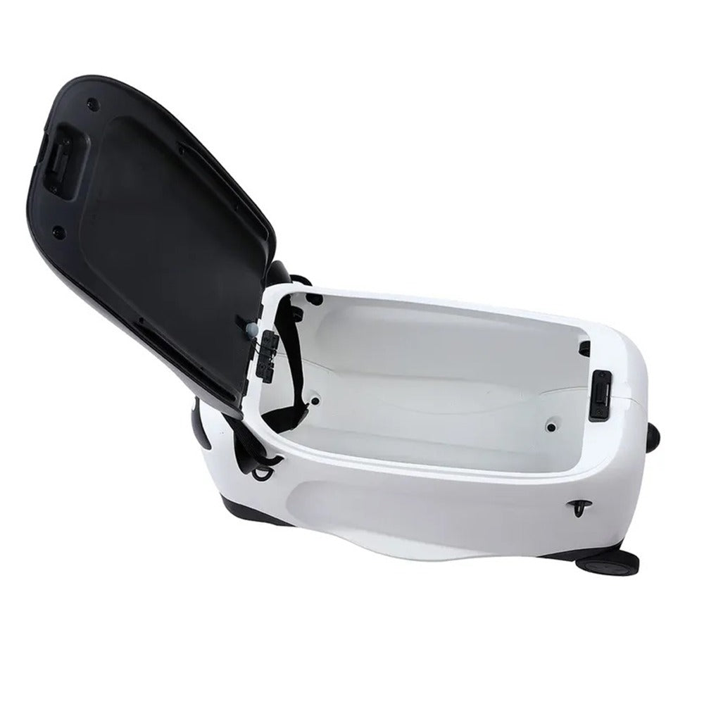 Tämä suloinen panda-kuosinen matkalaukku tekee matkustamisesta hauskaa! Laukku ei ole vain tavallinen matkalaukku – se on myös istuin pyörillä, jolla voit ajella lentokentällä tai asemalla odotellessa.